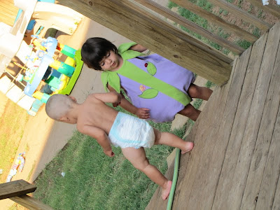I was cleaning out our front closet today and she saw her Halloween costume and had to try it on! She probably wore it for about two hours, if it wasn't the main part, it was the hat or the booties. Talk about constant entertainment!